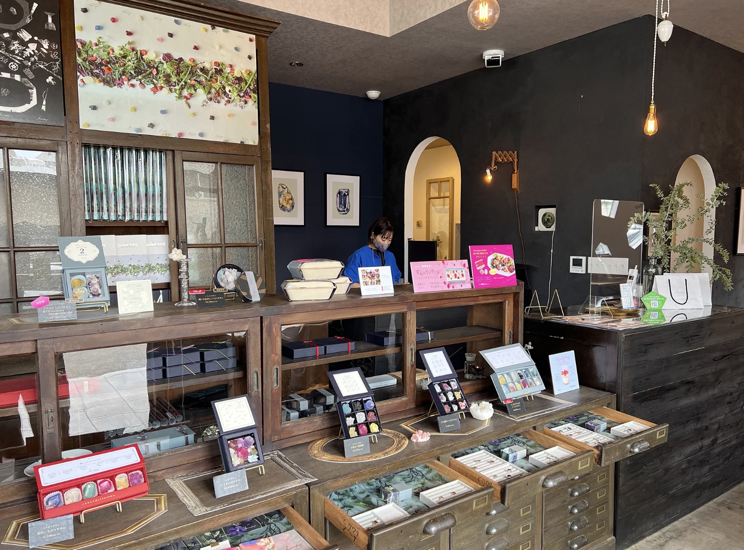 在福冈这边的店铺,也有贩售旗下琥珀糖品牌「Koubutsuwokashi」(こうぶつヲカシ)的商品,咖啡厅内所使用的琥珀糖,也都是旗下品牌的琥珀糖呢~在咖啡厅品尝完甜点之后,也能顺道买些琥珀糖当作伴手礼带回家。