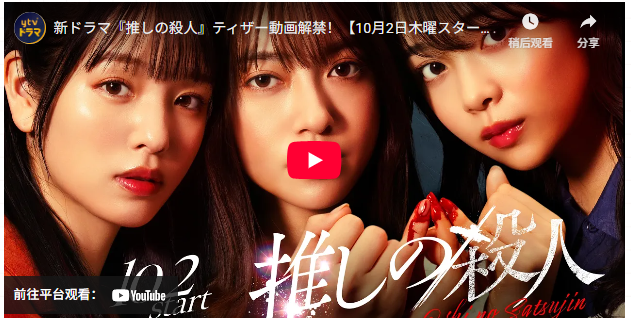 《地下偶像杀人事件》(推しの杀人)由田边桃子、横田真悠、林芽亜里三位共同主演,故事以地下偶像团体「Baby★Starlight」为中心,成员高宫瑠依、早川特玛与泽北泉美一起作为偶像活动着,没想到却意外杀了人,为了保护彼此的身分,她们约好要保守秘密,然而事实真能如他们所愿,又或者,友谊真的能够永久吗?