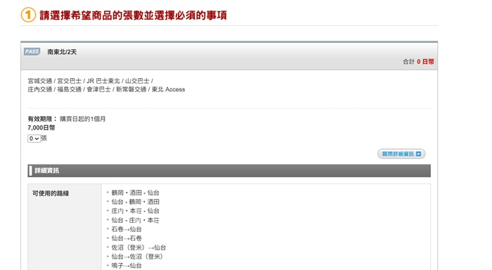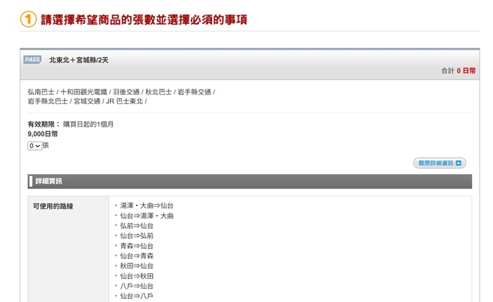这张「日本东北巴士套票」总共有分成3种,依照可以使用的县市数量,价格分别如下,注册登入后就可以进入购买页面,并显示可以搭乘的路线和日期。