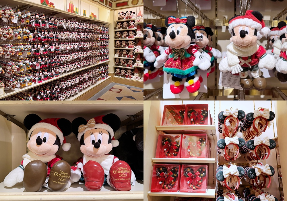 除了乐园限定的游行服装之外,两座园区共通的商品则有穿着圣诞服装的角色们,以及充满圣诞气息的发箍与圣诞花圈等等,琳琅满目的商品让人一踏进店内就舍不得离开。