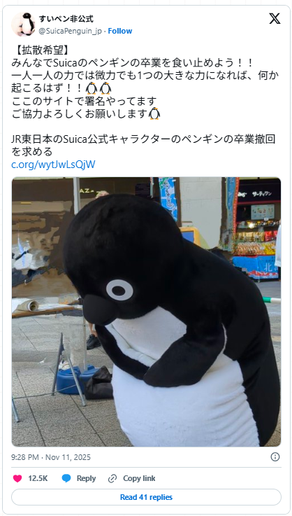消息一出,也让广大网友纷纷感到不舍,直呼不要让企鹅毕业!也有热心的网友在X发起连署,号召广大网友一同响应,希望能藉由粉丝的力量来阻止Suica企鹅毕业。