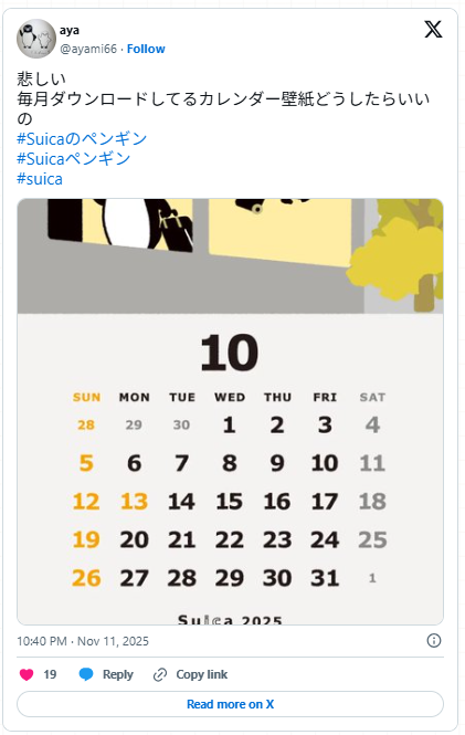 另外,每个月可以让JRE POINT WEB会员下载的Suica企鹅桌布,也有网友担心以后会不会再也没有了。