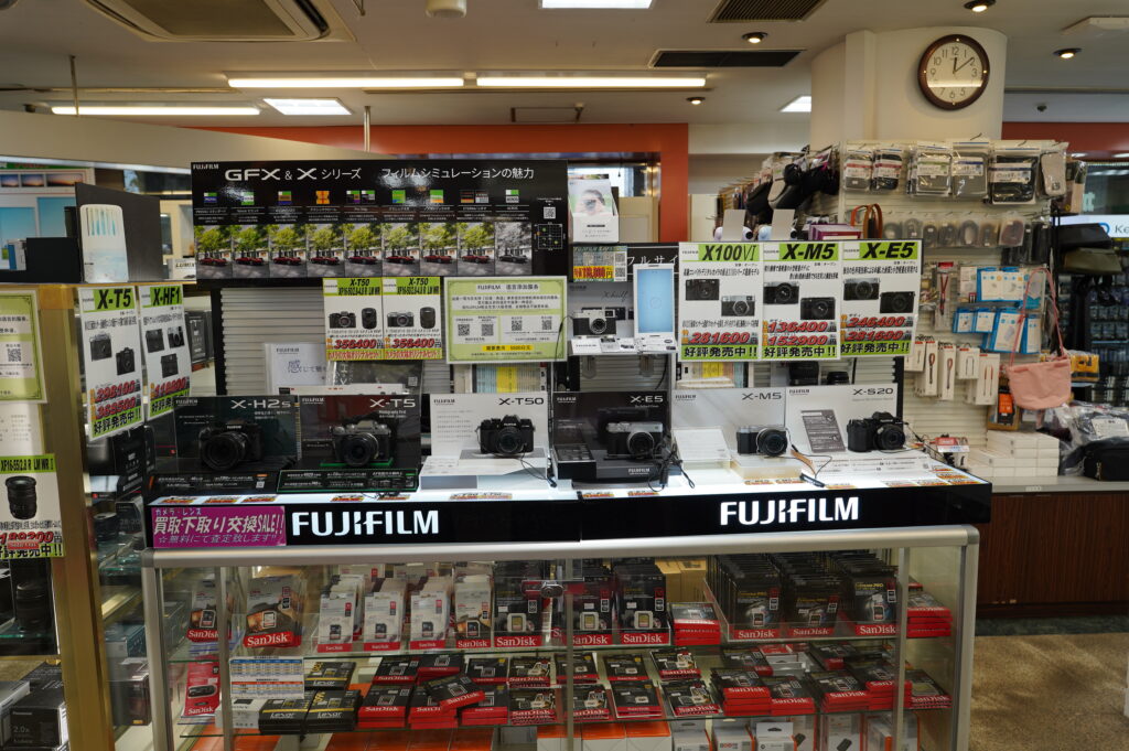同时,这里也备有许多深受年轻人喜爱的 胶片与即时成像产品,例如 富士拍立得(チェキ)、一次性胶卷相机“写ルンです” 等,让摄影不再局限于专业领域,而成为一种轻松、随性、富有乐趣的生活方式。从镜头、三脚架、滤镜到摄影包,这里可谓摄影者的“一站式天堂”。无论你是初学者、旅行者还是专业摄影师,「カメラの大林」都将成为你捕捉生活之美、留下精彩瞬间的最佳伙伴。