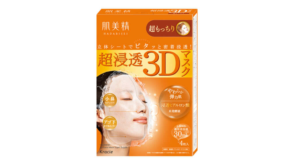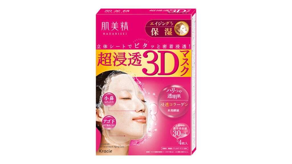 肌美精超渗透3D面膜系列采用能紧密贴合面部立体结构的3D设计,将美容成分传递到肌肤的每个角落。
