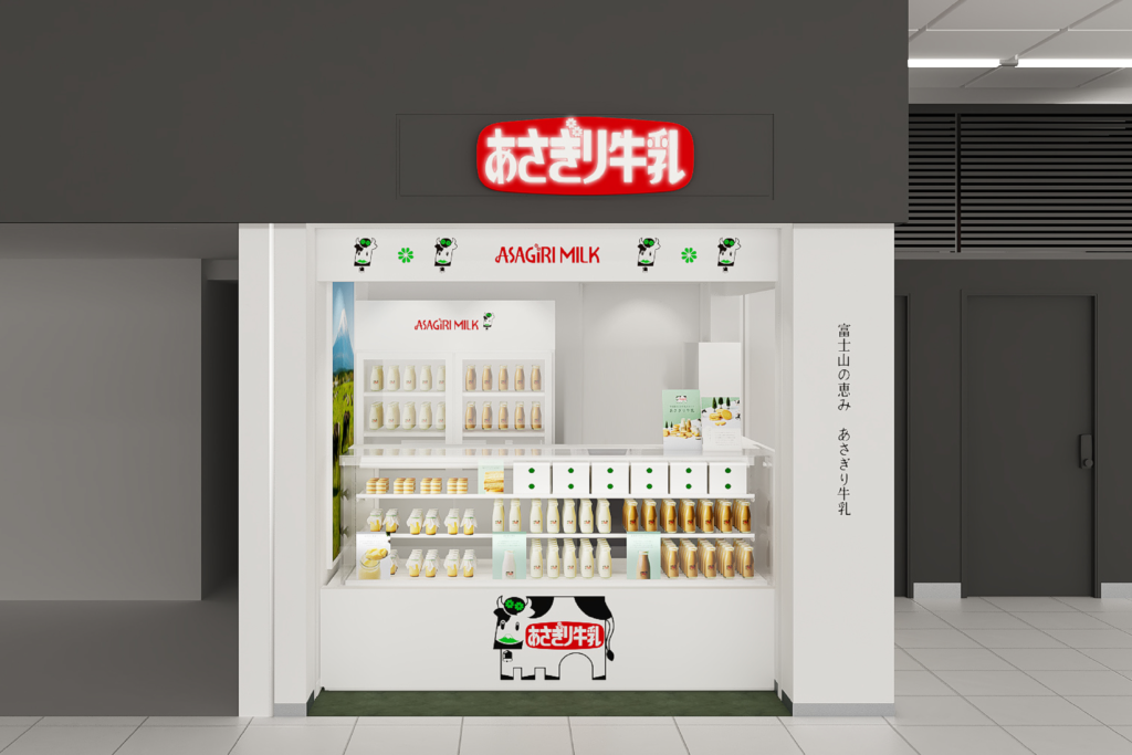以富士山麓朝雾高原的鲜乳为基底,「朝雾牛乳」于新宿站南口开设常设店铺。商品包括100%无调整牛乳与牛乳咖啡;甜点则有首次在关东贩售的朝雾牛奶泡芙,以及多种口味的极厚奶油馅夹心饼与松饼夹心,如纯牛乳、静冈抹茶、红豆奶油与生巧克力等口味。另有牛乳蛋糕卷、牛乳奶油面包、高原牛奶布丁与小饼干,适合在转车或逛街途中顺道带走。