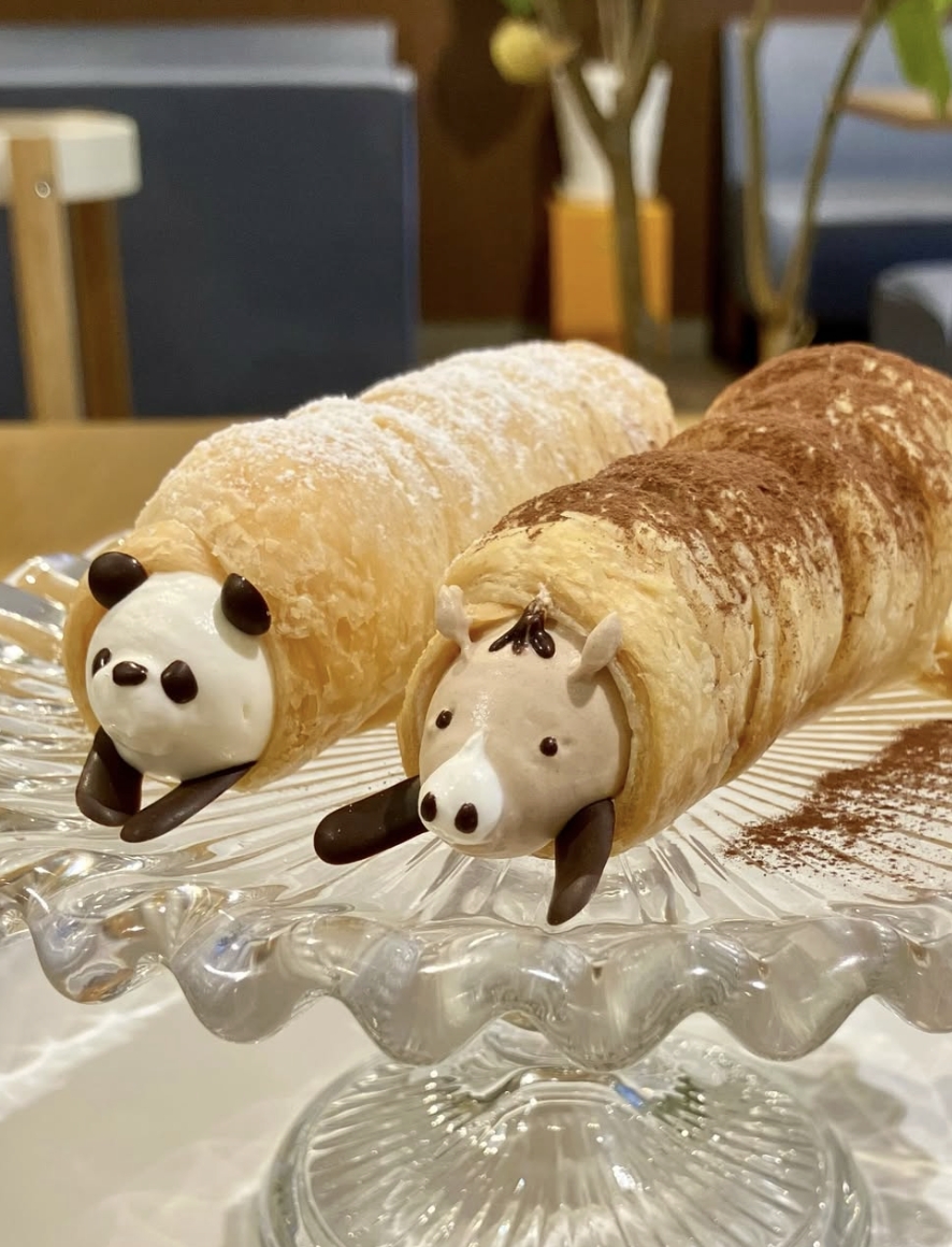 这款在马年/今年年初所推出的期间限定甜点,造型也是十分有趣。不仅沿袭了店内一定会有的熊猫元素,还加上了2026年的马年限定造型,将鲜奶油打造成熊猫与马的模样,外层则是裹着一圈派皮。