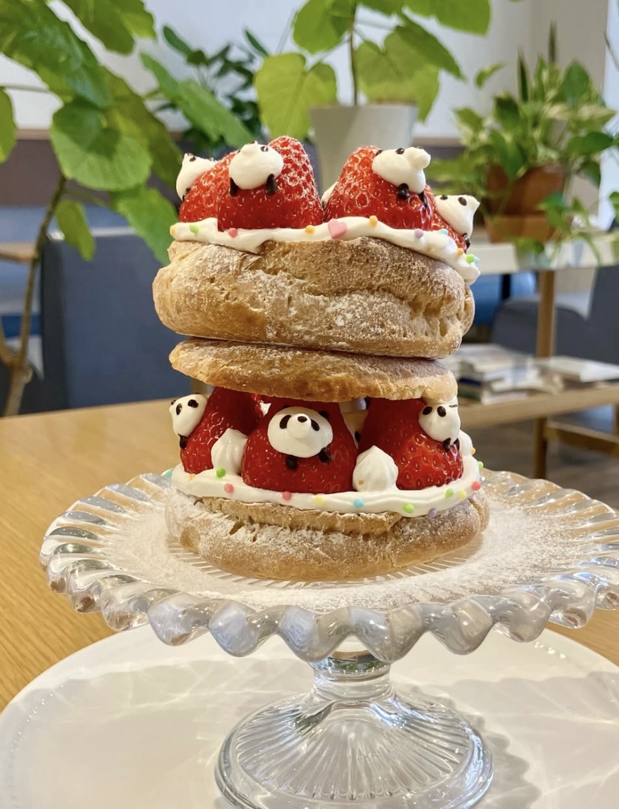 这道熊猫草莓泡芙塔「パンダのタワー」,可是店家近期推出的期间限定甜点,需要事先预约,且每日限量,预计只贩售到今年(2026)四月底。预约方式需要透过店家的官方Instagram私讯预约,并且需注意每次预约的开放日期。