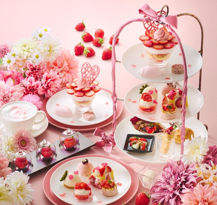 东京湾洲际饭店(InterContinental Tokyo Bay)在春季推出了草莓与开心果为主题的下午茶,使用的是甜度高且红润的「完熟红ほっぺ」草莓,加上香气四溢的开心果,制作出各种粉色系的甜点,营造满满春日气息。