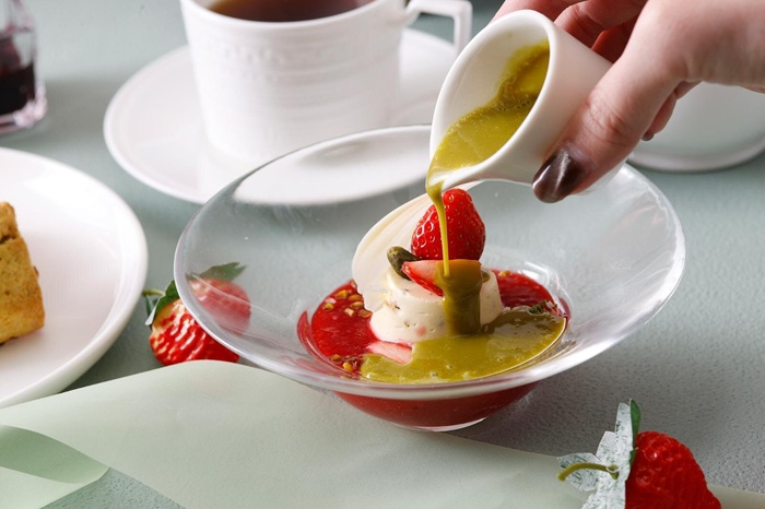喜欢Tiffany蓝色调的朋友,也可以参考东京车站大饭店在今年春季推出的「Strawberry Afternoon Tea」,以草莓为主题,搭配优雅的Tiffany蓝色食器,让用餐氛围变得更有仪式感。