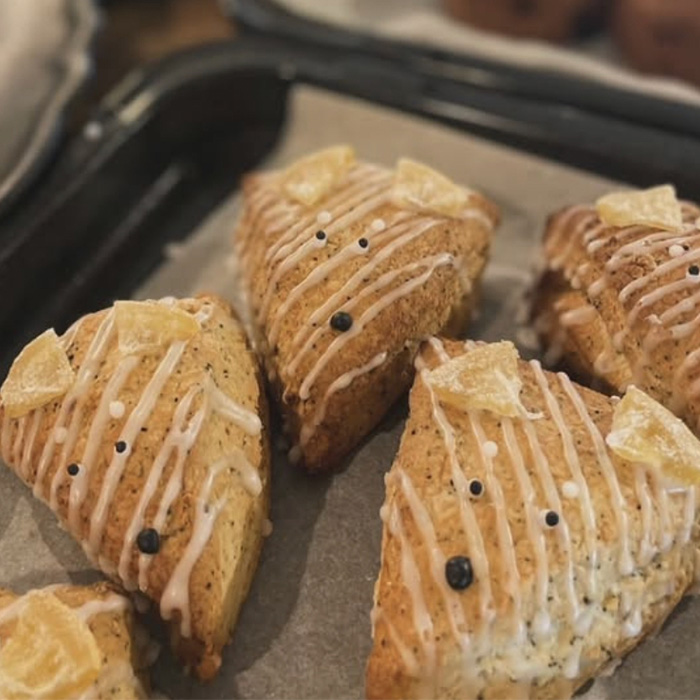 除了原味司康之外,其他口味的狗狗司康也有着各自不同的造型,比如这款是柠檬口味的狗狗司康(レモン犬),司康的形状为三角形,上面则以柠檬片点缀成狗狗的尖耳朵,十分可爱。