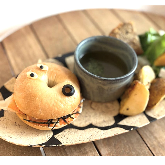 LOLOJAM这里除了贩售着手工贝果、咖啡与轻食之外,还推出了各种与「狗狗」有关的造型餐点,像是有着狗狗造型的贝果、司康、饼干以及期间限定甜点等,每一份被店主打造成可爱狗狗造型的疗愈餐点,都让人深深地感受到店主对于狗狗的喜爱。
